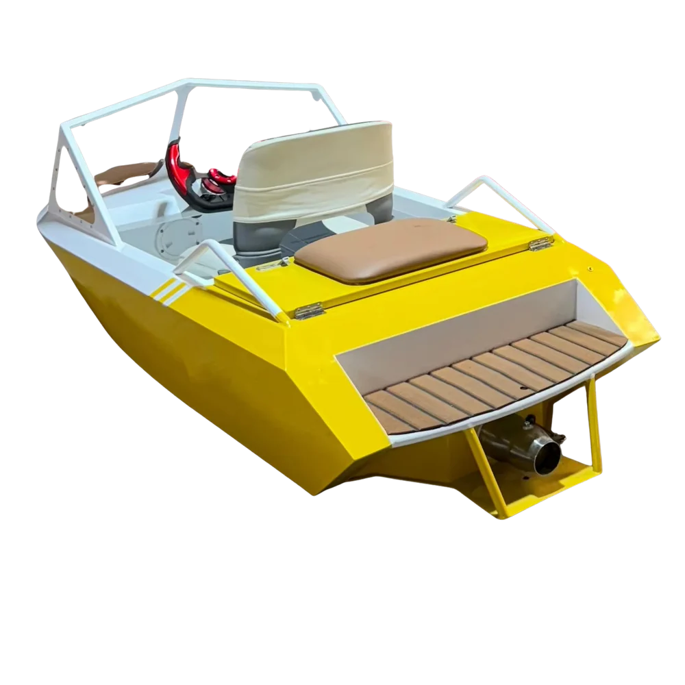 As one of the most popular mini jet boats on the market, the Mini Boat combines sleek yacht‑inspired styling with practical performance. The aluminum‑magnesium alloy frame reduces overall weight while improving stability and fuel‑free efficiency, making it ideal for easy trailering, storage, and quick launch and retrieval. The integrated electric jet‑pump drive system offers smooth acceleration from 0 to high speeds, with quiet operation that keeps your ride eco‑friendly and neighborhood‑friendly.